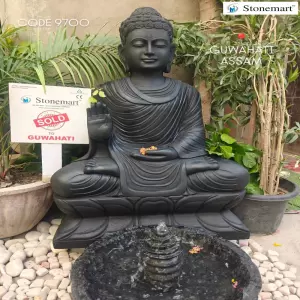The power of refined Indian craftsmanship and positive spiritual Vastu amalgamated like never before! Stonemart™ proudly presents this big black stone Buddha sculpture in 4 feet for interior and exterior spaces.