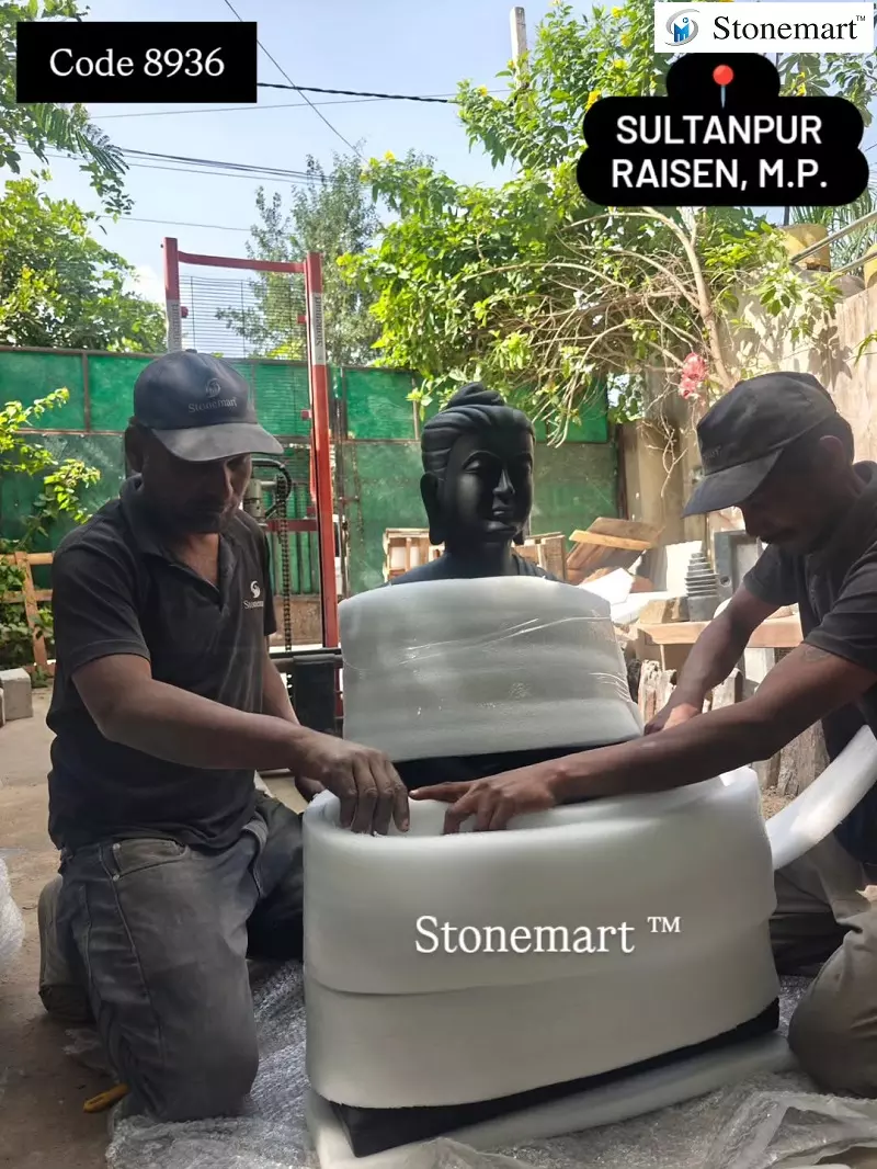 Stone Buddha with waterfall and lotus pond being packed for dispatch to the farmhouse of our client in Sultanpur, Raisen, Madhya Pradesh from Stonemart ™. Just look at the 'BTS' photos and video shared by our team and you will realize the efforts being put to secure the packaging entrusted by you upon us to ensure the safest delivery at the doorstep of the given address.