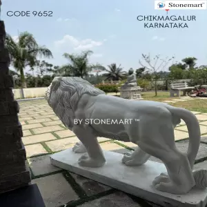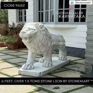 Stonemart ™ client testimonial of 6 feet majestic stone lion, over 1.5 tons lion placed in Chikmagalur, Karnataka from Stonemart ™. As you can see in the video shared by our client post installation, the grandeur of such a masterful testament of art only amplifies an upscaled exterior of both residential and commercial establishment. The concerned space can be that of the entrance, the driveway or even the walkway through the frontyard adjacent to the garden.