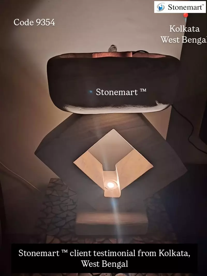 Stonemart ™ client testimonial of table top fountain cum bed side lamp shared post installation from Kolkata, West Bengal. Don't forget to check out the video shared by our client above. Our client has captured the footage after turning the ceiling and wall lights off to capture the real essence of the fountain with light. The radiance of the fountain surface light from the base reflecting against the adjacent wall.