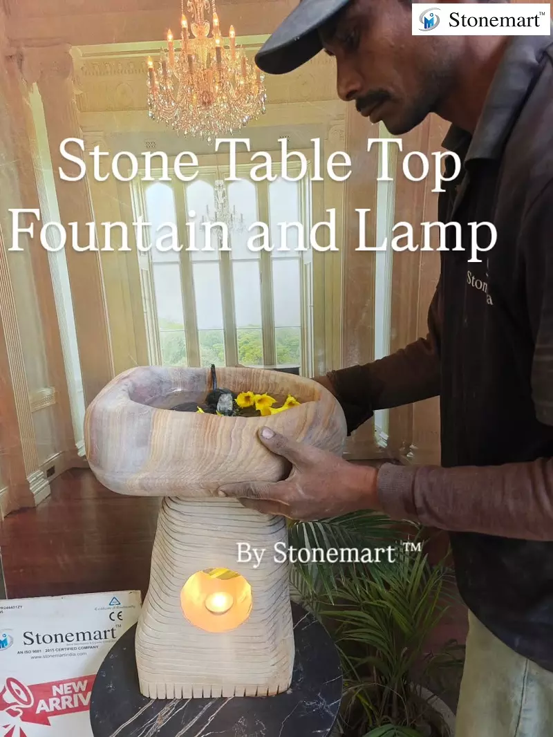 Our new product based upon modern fountain ideas. Fully hand carved fountain for interior decor along with lamp for your beautiful console table, bed side table and even outdoors such as a fountain with light for garden by Stonemart ™. Not hollow, yet light weight, simply place it next to your bed or in your living room and immerse yourself in the tranquil sound of bubbling water made by the submersible Indian standard pump that comes along with it.