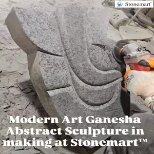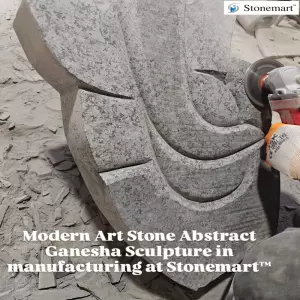 In making...modern abstract minimalistic granite stone Ganesha sculpture at one of the manufacturing units of Stonemart™.