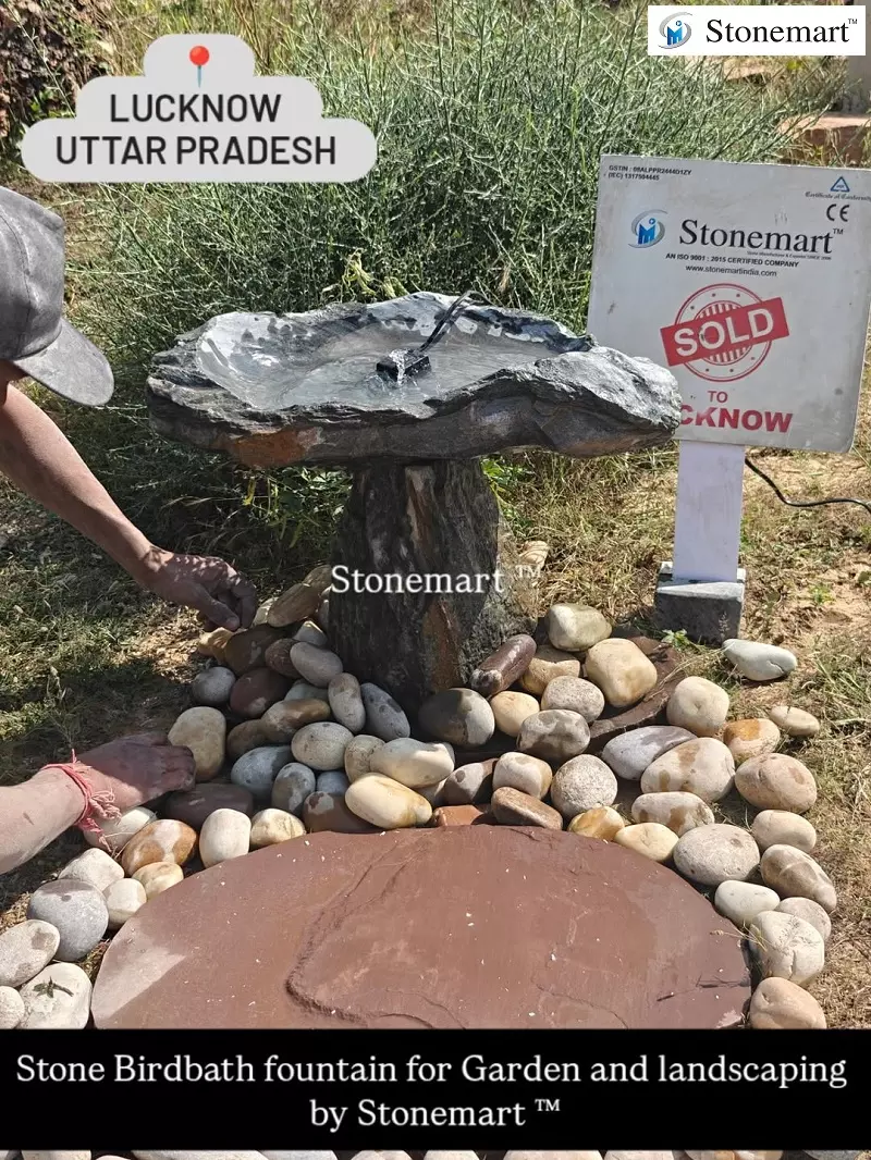 To order this outdoor rustic rock birdbath and rock uruli fountain for garden or for further queries call/WhatsApp +91-9413348979 or mail info@stonemartindia.com