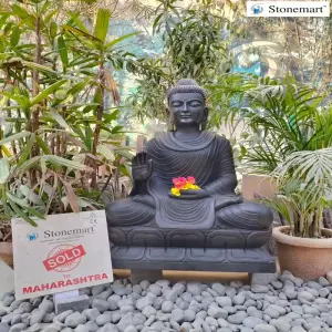 The fearless black Buddha statue is hand carved in the factory of Stonemart™. We never use stock images on our website. We only display what we manufacture and sell and you will receive exactly what you see and order. An exclusive set-up for your bungalow, mansion, entrance, terrace, garden, Buddhist temples and monasteries, luxury villas, farmhouses, offices, resorts, restaurants, hotels, academic and research institutions, clubs, hospitals, rehabilitation centers, etc. For the optimum Vastu results, place this Buddha ji at the entrance facing East.