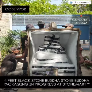 Packing in progress for our 4 feet black marble Buddha statue getting ready for shipping to our client in Guwahati, Assam from Stonemart™.