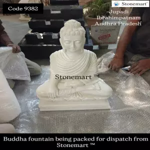 In the video shared by our team above showing modern cascading granite and marble stone Buddha fountain being packed for dispatch to Jupudi, Andhra Pradesh from Stonemart ™. The Buddha sculpture is getting wrapped in multiple layers of bubble sheets along with 1 inch thick foam sheets encircling the whole idol. It will save the product against any form of external impact during the transit.