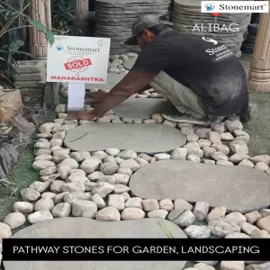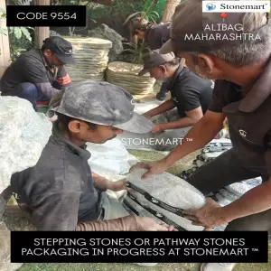 Modern Landscaping - PATHWAY stones or stepping stones packaging in progress for dispatch to Alibag, Maharashtra from Stonemart ™.
