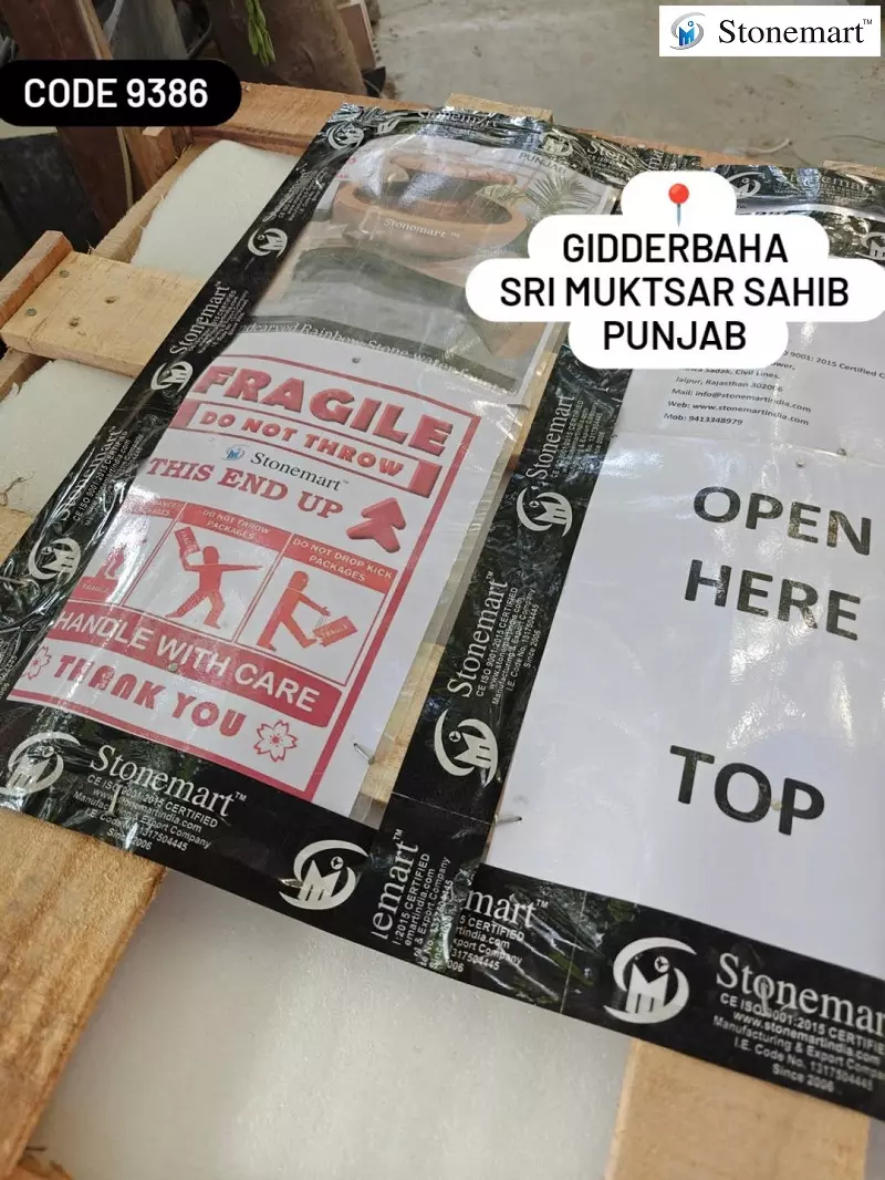 Sold, packed and dispatched to Gidderbaha, Sri Muktsar Sahib, Punjab on the online order of our client. It is a beautiful rainbow natural stone water fountain with mesmerizing water sound from Stonemart ™. A perfect blend of multiple layers of safety is offered to the product including multiple layers of bubble wrapping, one inch thick foam sheets for internal safety. The robust wooden pallets are used for the outer safety amidst shipment to the given address.
