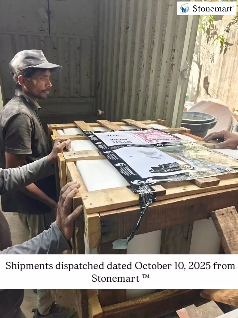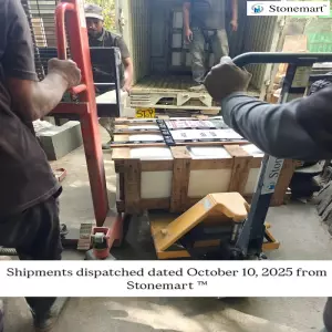 Shipments getting dispatched to our clients in various parts of MP in India from Stonemart ™ dated October 10, 2025. The trucks have arrived, and all the product pallets have been shifted from their respective packaging units with the help of forklift. It always helps in ensuring that there is minimal human intervention till the pallets reach their respective transport vehicles.