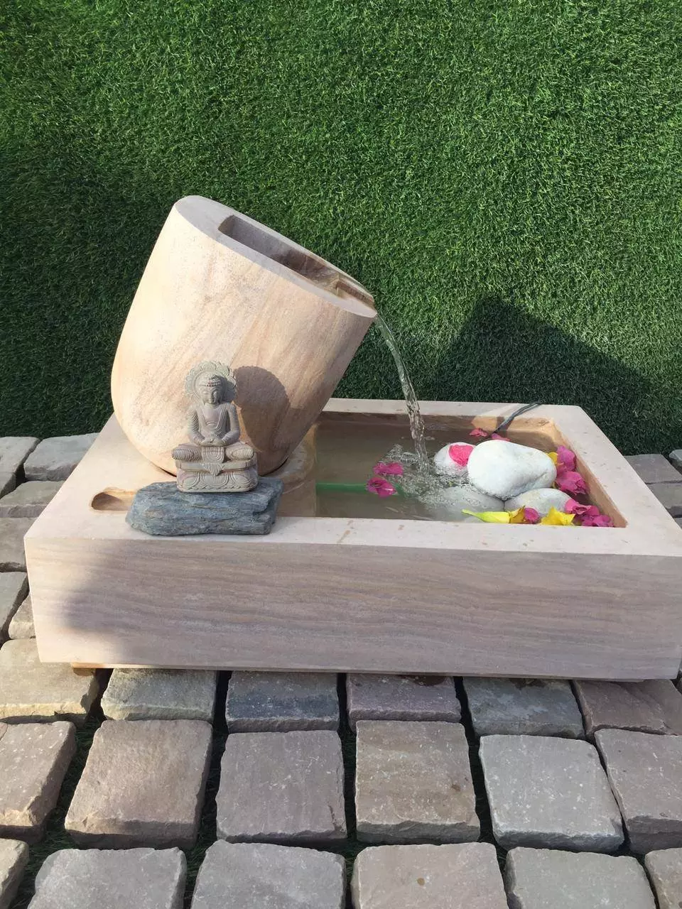 A worthy choice for exclusive homes, bungalows, mansions, garden, office, resort, luxury villas, restaurants, farmhouse, hotel, clubs, public parks, academic and research institutions, hospitals, rehabilitation centre, and for various other types of commercial establishments with a planned architecture. We proudly made this 'made in India' product and the images that you are seeing are 100% original and belong to that exclusive product only from Stonemart™. Here, you will only get what you see at Stonemart™. Despite its considerable size, this tilted fountain with Buddha can be installed directly and quite easily with no involvement of any civil work at the property at any stage of installation whatsoever.